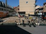La piazzetta antistante il Mercato Centrale Coperto, dopo la rimozione dell’asfalto, causa il “fermo” del cantiere, è transennata e inagibile ormai da un mese.